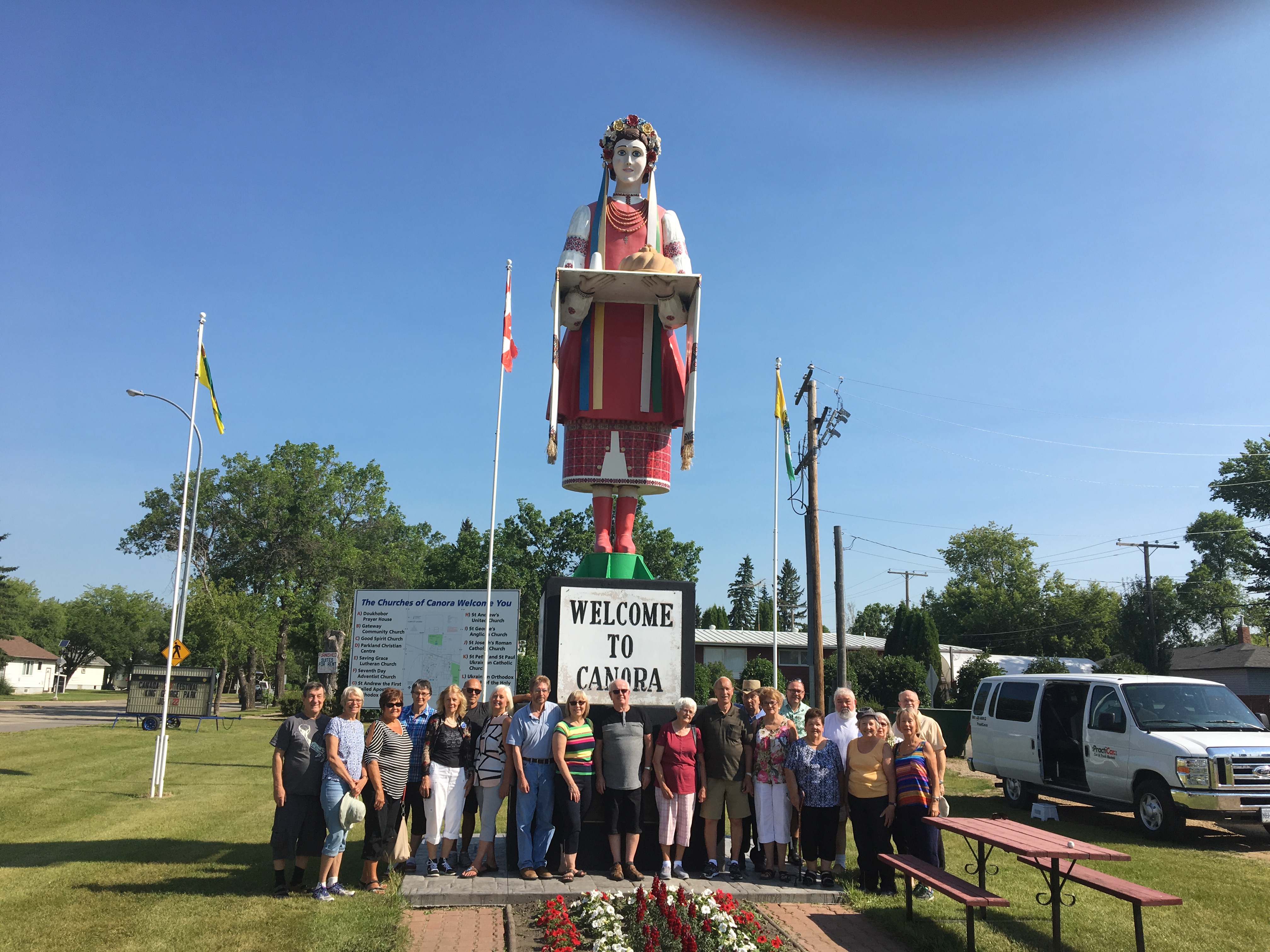 We all took a picture with the Ukrainian Lady statue and her traditional welcome with a loaf of bread (Lasha) on entry to Canora.
