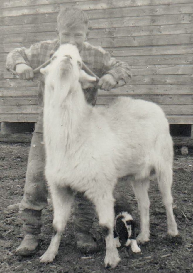 My father (Wasyl Verigin) had a soft heart. A visit to a farmer friend near Pelly, Saskatchewan resulted in him accepting a gift of a baby goat. “Your young family would love this animal as a pet”, was the farmer’s convincing words as the young goat “kid” was loaded into the wagon box and travelled with my father to our surprise on arrival.